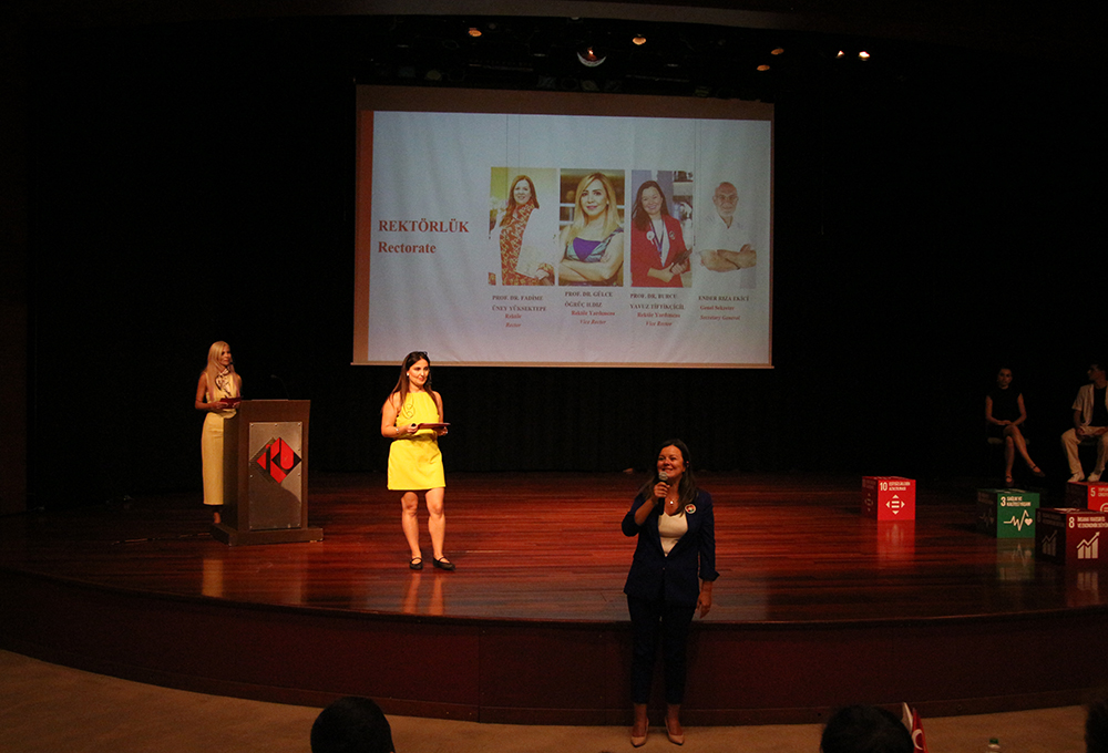 Doğa Kurtyiğit, üniversitemizin temellerini atan değerli isimlerini; Dr. Tuğba Özışık Öğrenci Dekanlığı’nı; Kariyer Uzmanı Ecem Uçar, Öğrenci Yaşam, Kulüpler ve Profesyonel Kariyer Koordinatörlüğü’nü; Dr. Öğr. Üyesi İsmail Çakıt, Spor Koordinatörlüğü ve spor takımlarını tanıttı.