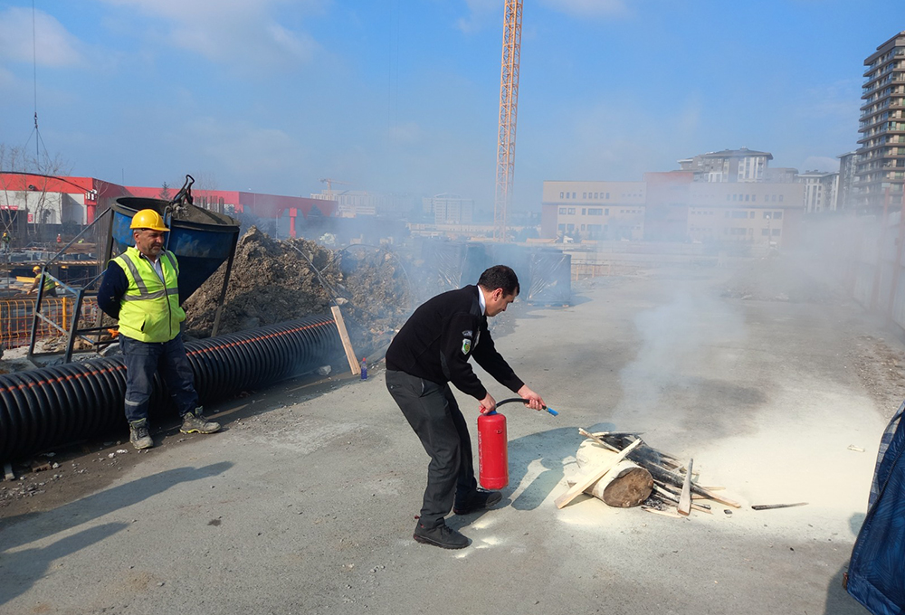 Destek Hizmetleri Daire Başkanlığı tarafından, yerleşkelerimizde görev yapan güvenlik personelimize yönelik 4 Nisan Cumartesi günü "Yangın Güvenliği Eğitimi" gerçekleştirildi. Uzman Eğitmen Umut Kuruöz tarafından verilen eğitimde; yanma ve yangın bilgisi, yangın çeşitleri, yangın nedenleri ve etkenleri, önleyici tedbirler, söndürme yöntemleri, söndürmede kullanılan malzeme ve cihazlar ile söndürme tatbikatı konularında personelimiz bilgilendirildi. Eğitimin devamında ise Ataköy-2 şantiyemizde uygumalı yangın tatbikatı yapıldı.